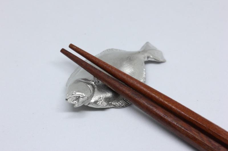 のんびりした見た目に反して、獰猛なハンターのヒラメを箸置きにしました。
