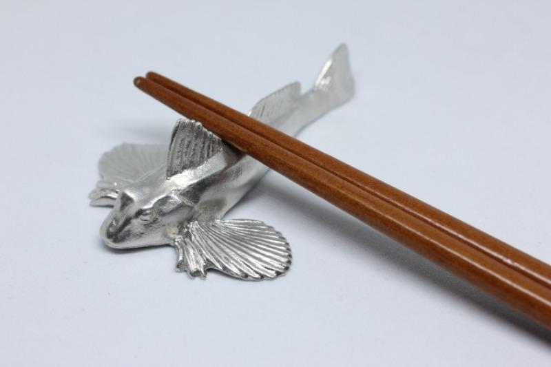 砂地に潜っって獲物を待ち構える、マゴチをモチーフにした錫製の箸置きです。
