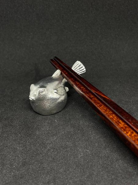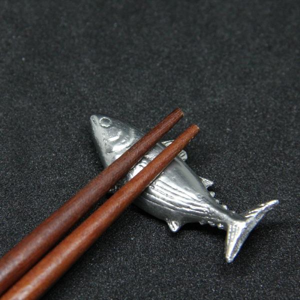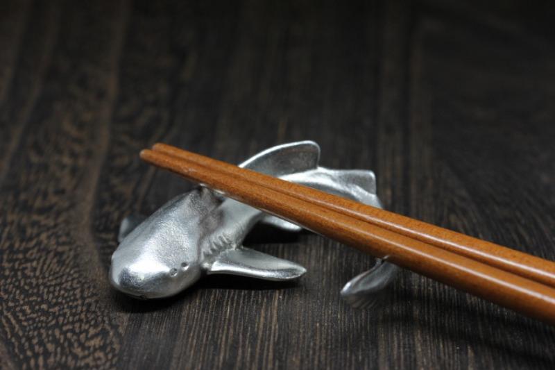 丸っこい頭がどこか愛らしいトラフザメをモチーフにした錫製の箸置きです。