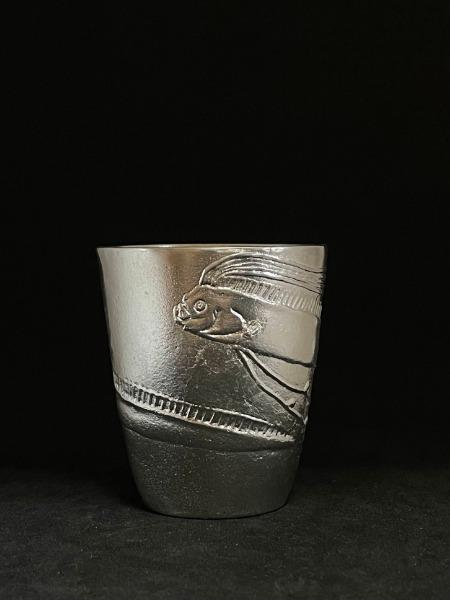 リュウグウノツカイをあしらった錫製のぐい呑みです。