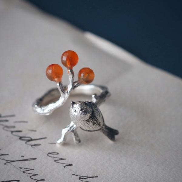 シマエナガとナナカマドのリング