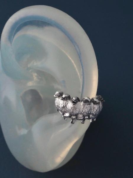 シマエナガひなたちのイヤーカフ