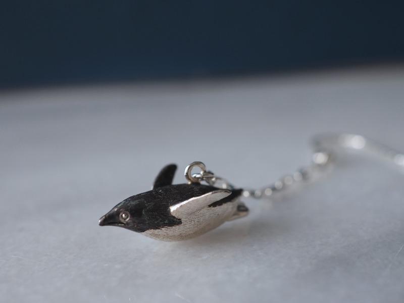 すいすいと泳ぐアデリーペンギンの耳飾り。