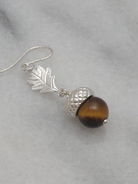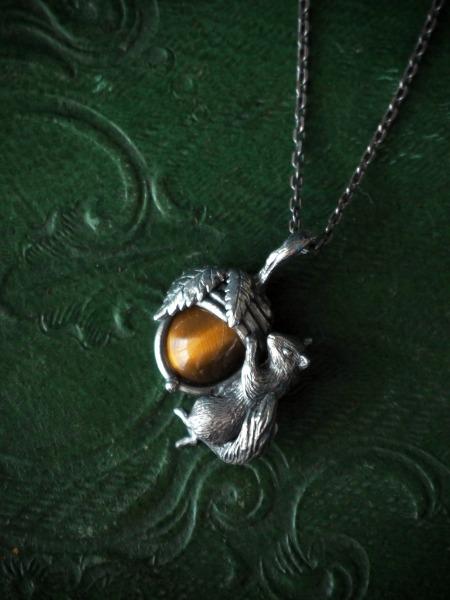 新作です。耳元をタッタカと走るシマリスのイヤーカフ。天然石のどんぐりもついてます。