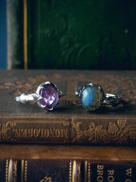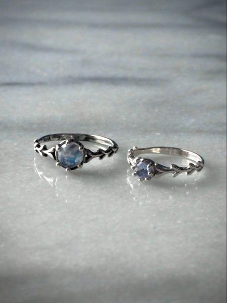 レインボームーンストーンとタンザナイトで仕立てました。