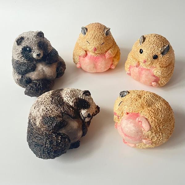 写真はシマリス、ハリネズミ、モモンガ、パンダです。
