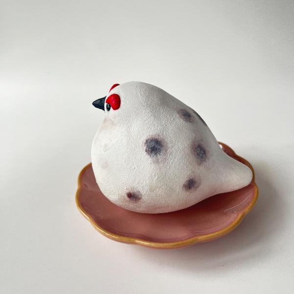 豆大福に似せた冬毛のライチョウです。