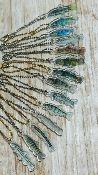 色鉛筆で描いた絵を元に製作したアクリルキーホルダーです。両面印刷ですので、どっちを向いても魚柄です。是非、お鞄などにお付けください。魚が好きな方へのプレゼントにも是非ご検討ください!