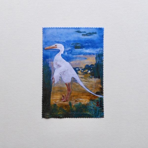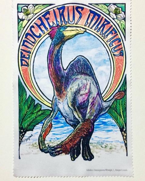 デイノケイルスの復元画イラストをメガネ拭きにプリントしました。