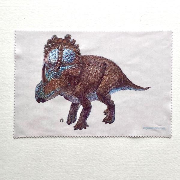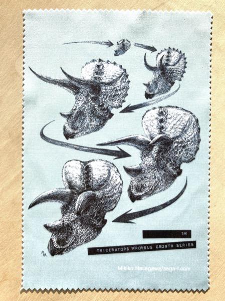 トリケラトプスの成長段階の復元イラストをメガネ拭きにプリントしました。