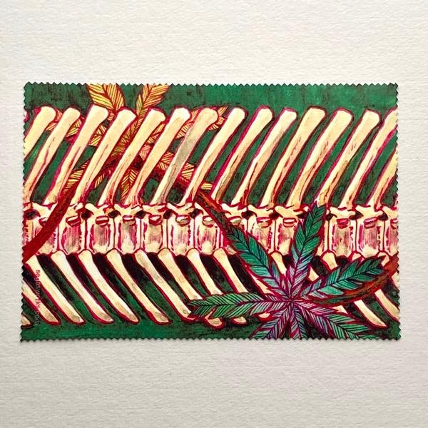 恐竜の骨と植物 メガネ拭き