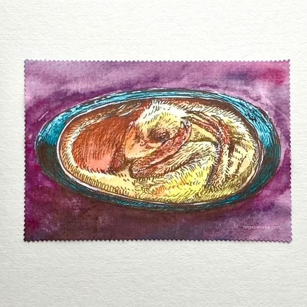 エンブリオの復元画イラストをメガネ拭きにプリントしました。