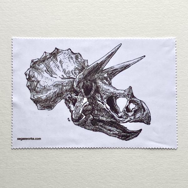 トリケラトプスの骨のイラストをメガネ拭きにプリントしました。