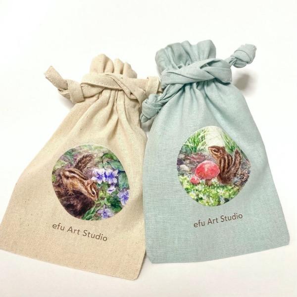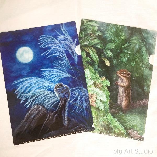 植物と戯れるシマリスと、お手紙を届けるシマリスの2種類の絵柄があります。