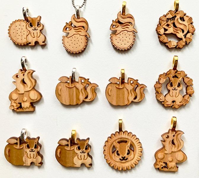 ヒノキ板をレーザー加工したペンダントヘッド。