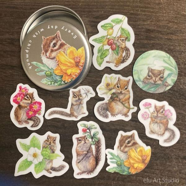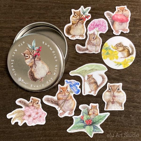 3〜4cm程度の小さなシマリスと植物のステッカー2025年新作です。