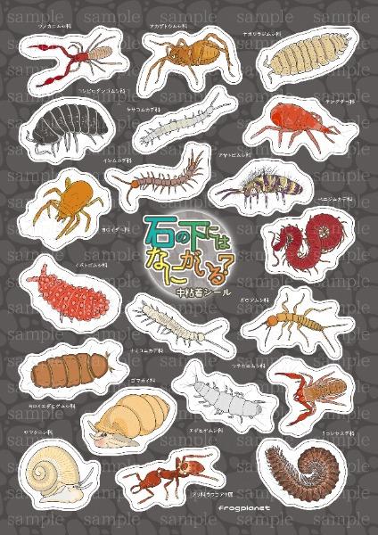 カードゲーム「石の下にはなにがいる?」で使用したイラストの中から20種類をステッカーにしました。