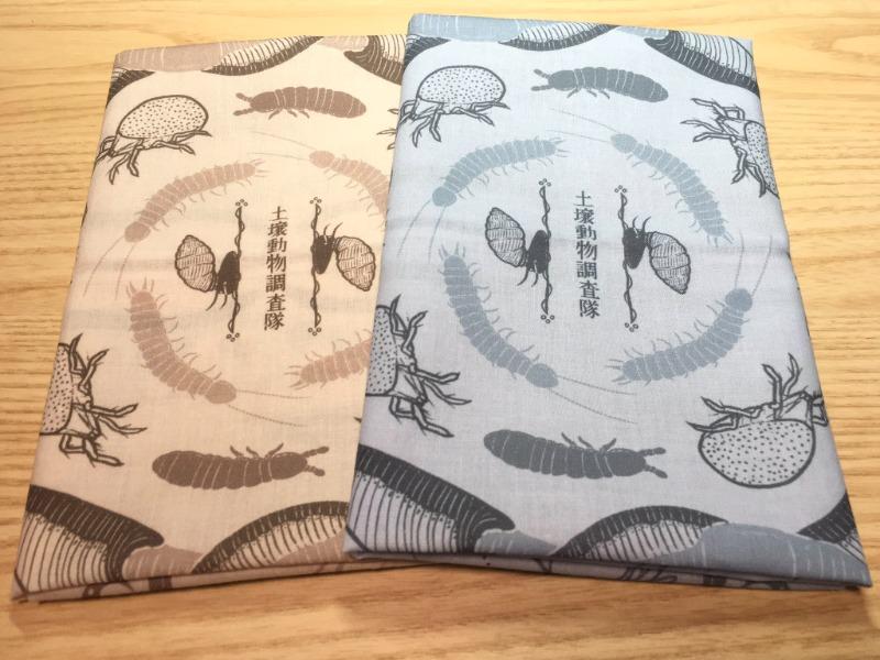 変形菌やダニ・トビムシ・ガロアムシ・コムカデ・リクウズムシなどの多様な土の生き物たちをデザインしたハンカチです。