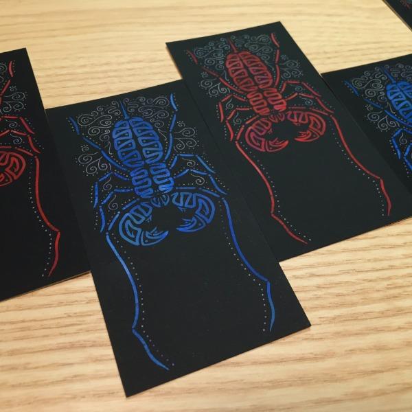 蠍擬(サソリモドキ)の護符風ステッカー。赤と青の2枚入りです。