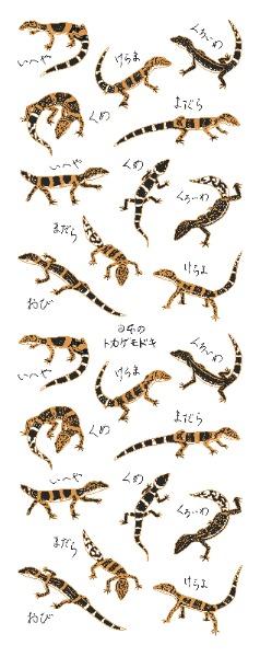 徳之島~沖縄諸島に分布するトカゲモドキたちが小さなシールになりました。