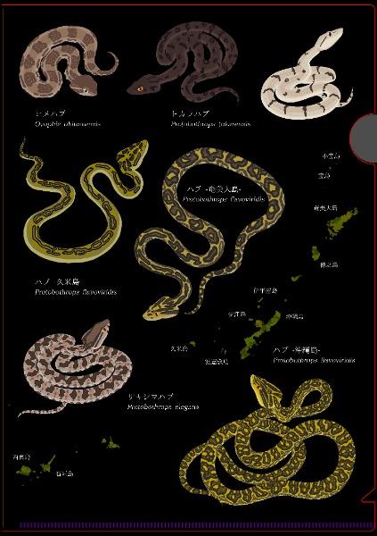 そんなハブたちと彼らの棲む島嶼部を描いたクリアファイルです。