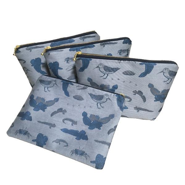 そんな有明海の干潟をモチーフにオリジナルのジャカード織を織っていただきました。今回はポーチに仕立てたものを販売いたします。