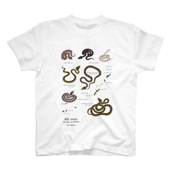 そんなハブたちと彼らの棲む島嶼部を描いたTシャツです。