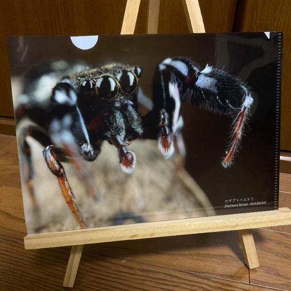 管理人はハエトリグモの中でウデブトハエトリが最も好きなので、ウデブトハエトリをでっかくプリントしたクリアファイルを作りました。