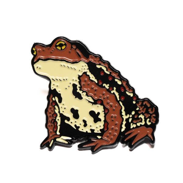 東日本に自然分布するどっしりした身近なカエル、アズマヒキガエルのピンブローチです。