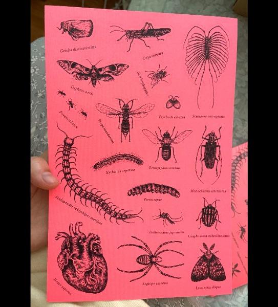 心臓のイラストレーションの入った女性の体幹骨格をプリントしたロングTシャツです。