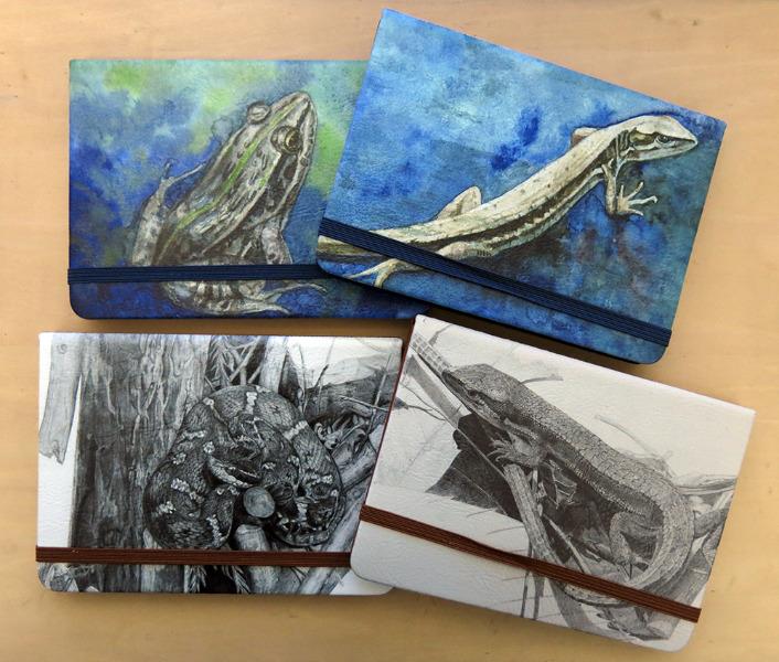 絵柄は、水彩画のトノサマガエルとニホンカナヘビ、鉛筆画のニホンマムシとニホンカナヘビです。