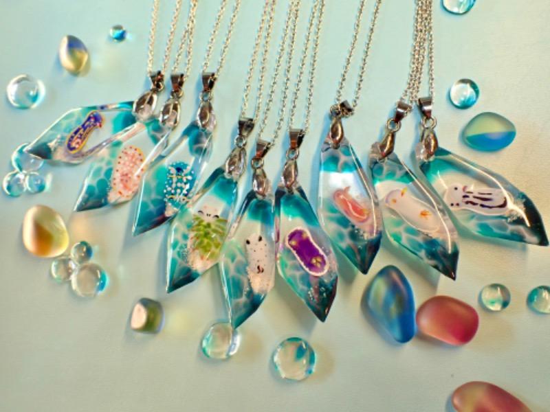 <ネックレス>ウミウシの入った海のカケラのようなネックレスです。