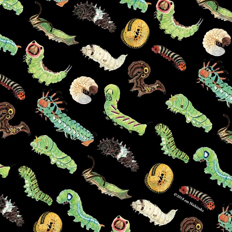 イモムシモチーフのグッズやアパレル商品、原画の販売をします。