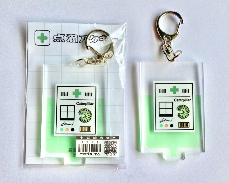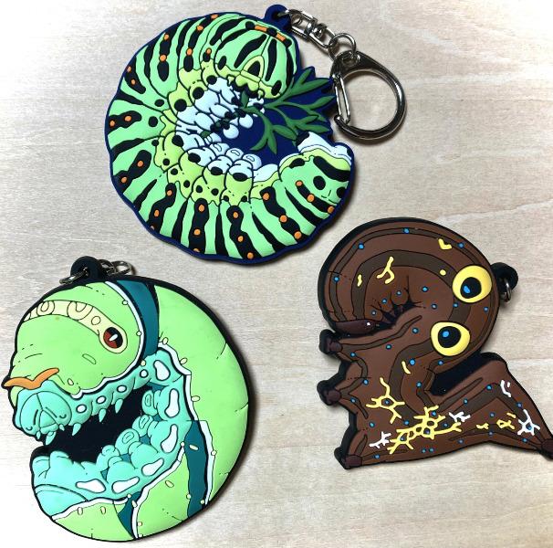 イモムシの半立体ラバーキーホルダー。ぷっくりしてます