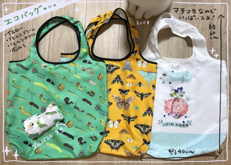 幼虫柄・成虫柄のエコバッグ ゴムバンドつき